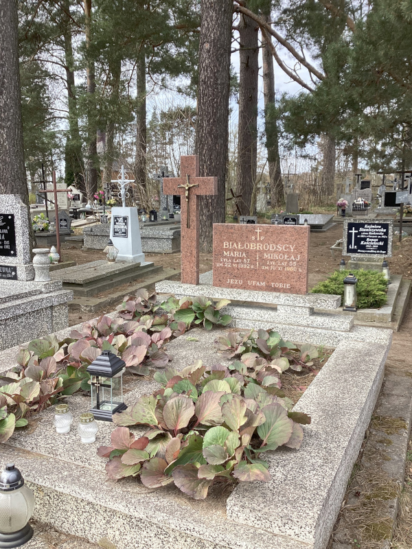 Wspólne miejsce wiecznego spoczynku Mikołaja i Marii Białobrodskich na białowieskim cmentarzu. Kwiecień 2026 r. Fot. Piotr Bajko.